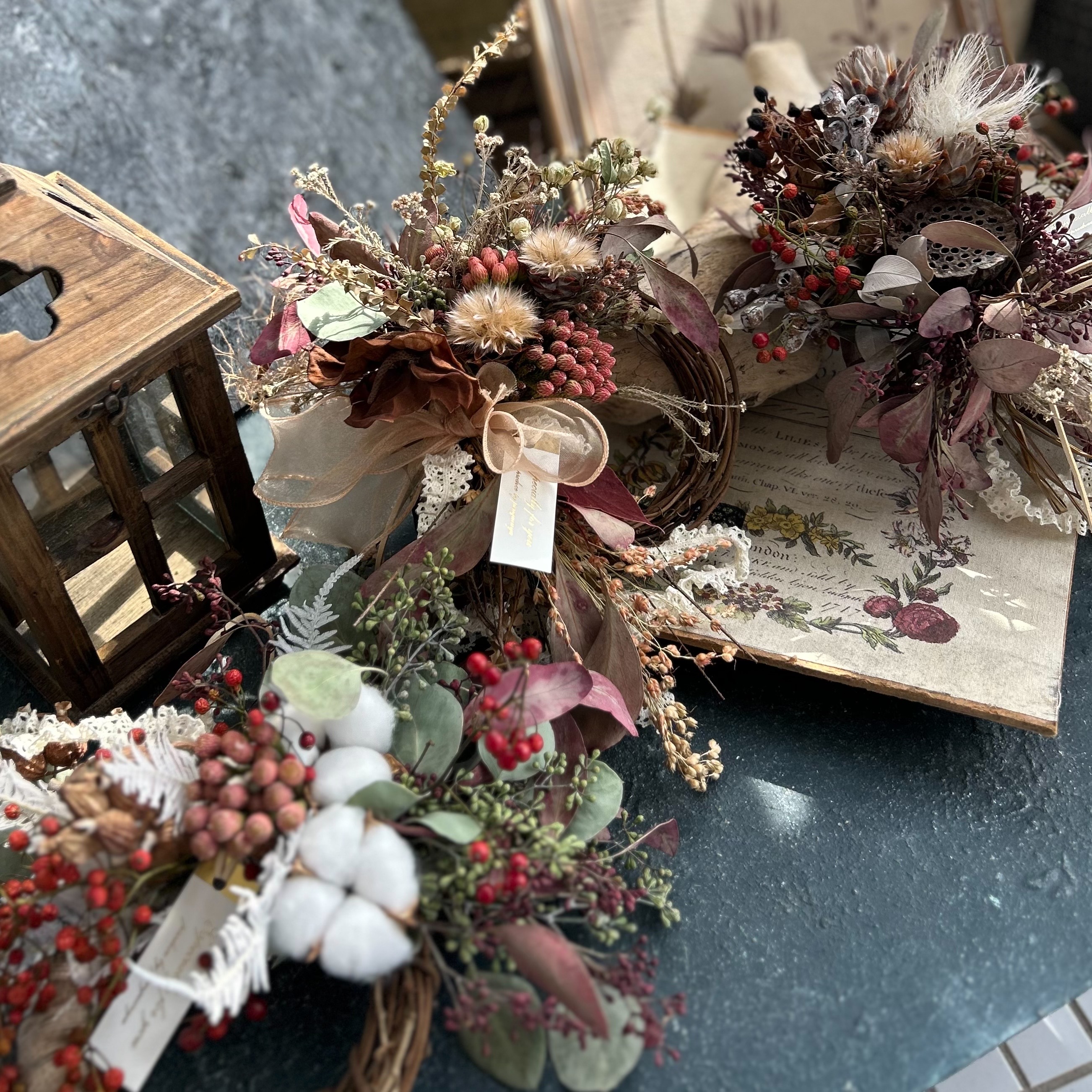 ドライフラワー・アーティフィシャルフラワーで仕上げています。