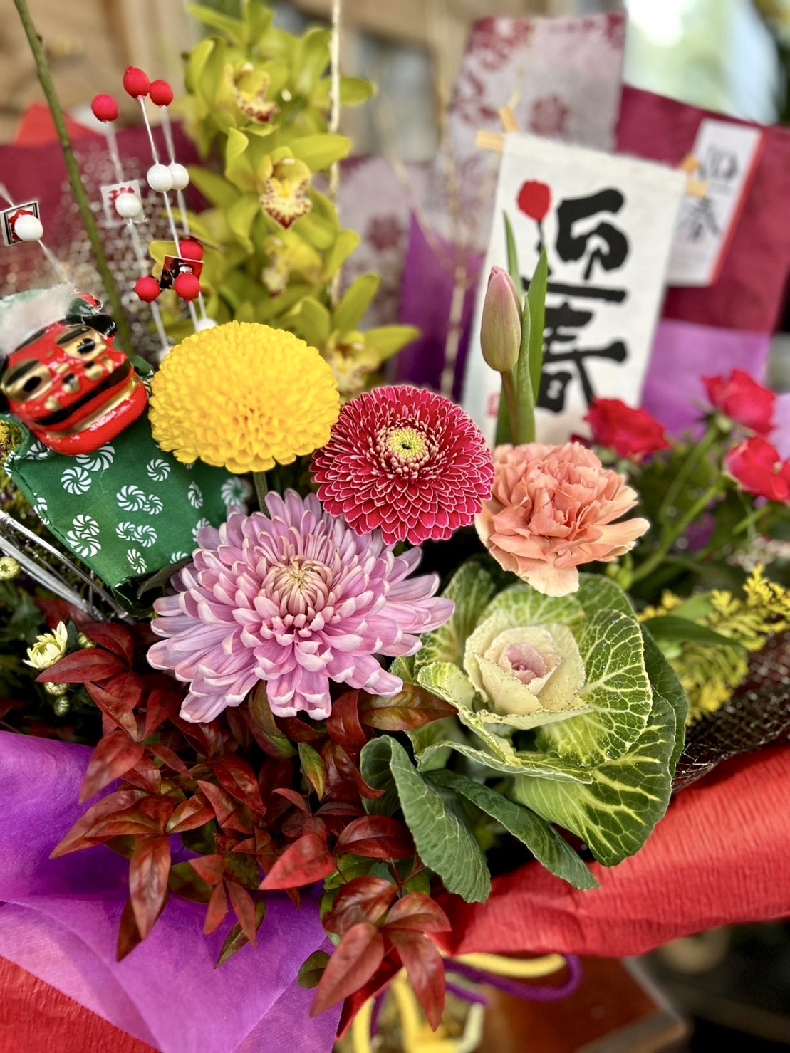 お正月の慶事にぴったりの松・竹・梅を使ったアレンジメントです!