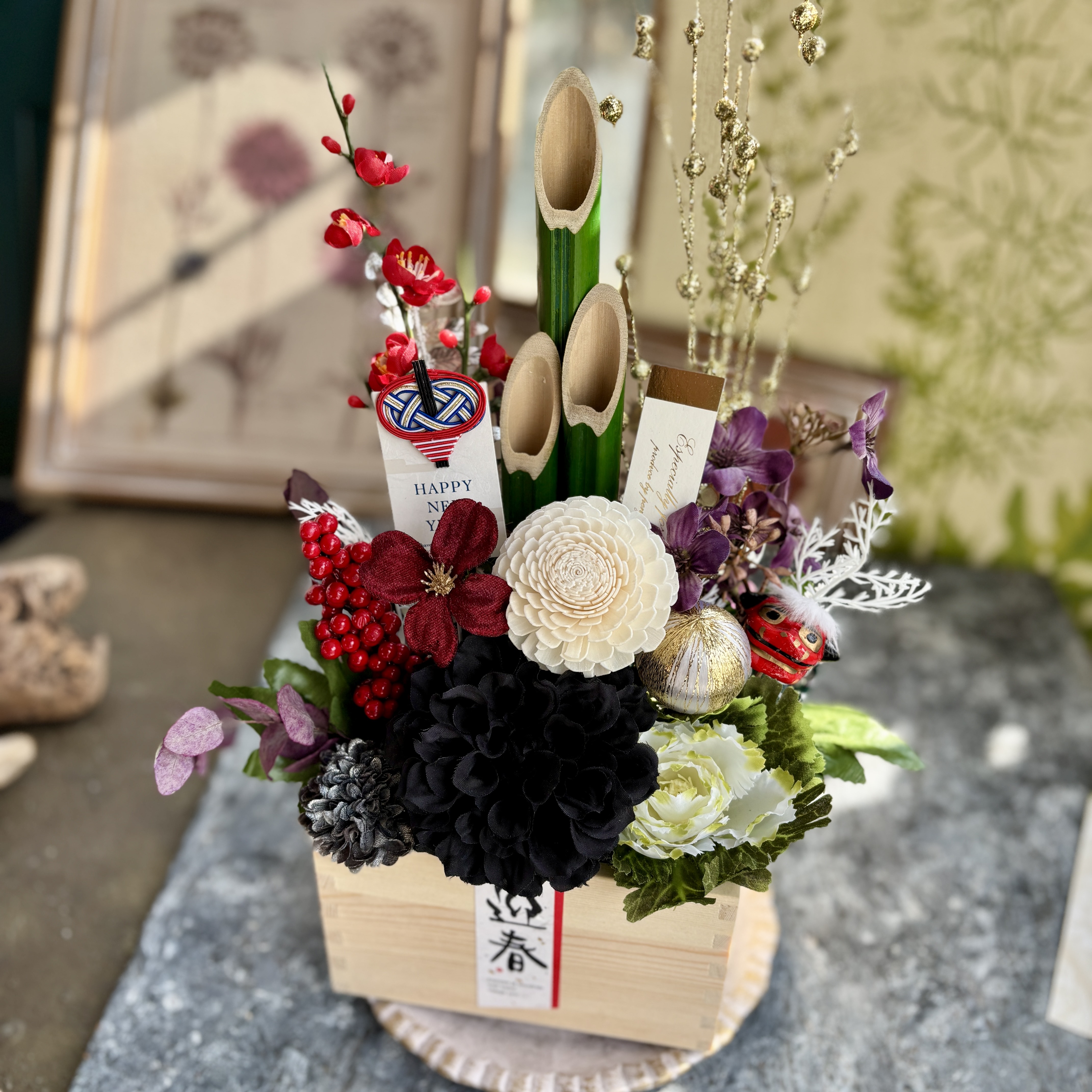 お正月期間アーティフィシャルフラワー(造花)のアレンジメントは